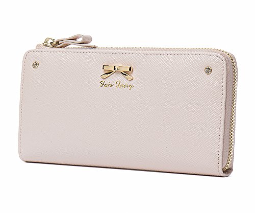 - 6位 [フェアーフェアリー] 財布 レディース シンプルリボン L字ファスナー 長財布 本牛革 エレガント レザー 大容量 可愛い 160724 (ピンクベージュ)