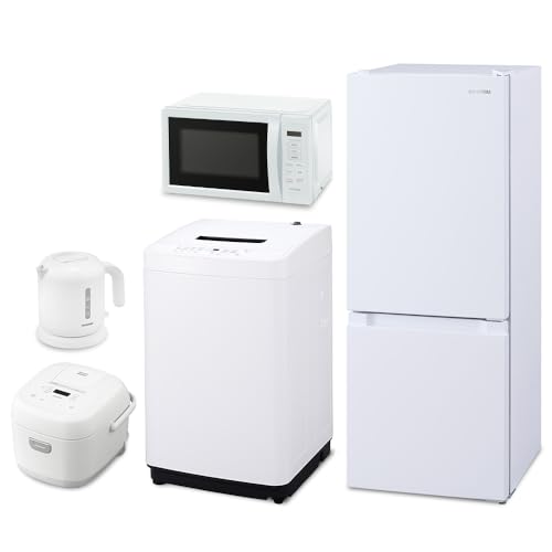 【新生活家電5点セット】アイリスオーヤマ 家電セット 冷蔵庫133L 洗濯機5kg 電子レンジ17L 炊飯器 3合 ケトル ホワイト 一人暮らし |