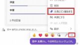 チャットで表示されているファイルの辺りにカーソルを合わせると、上部に応答アイコンが表示されるので、右側の三点リーダー(…) をクリックする。
