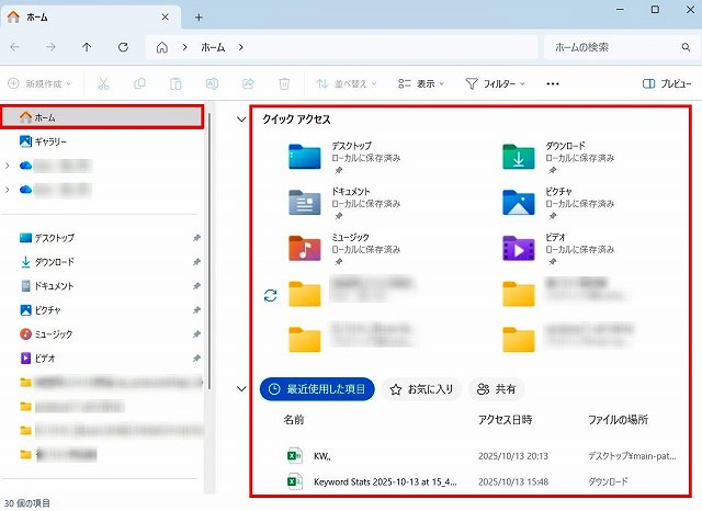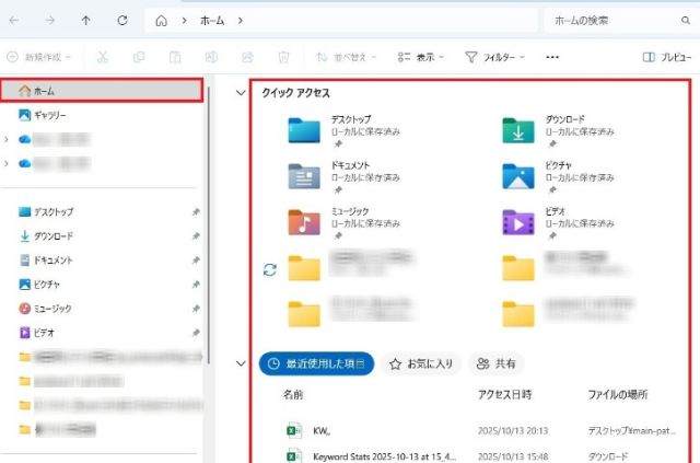 Windows11では、エクスプローラーのデザインが刷新され、従来「クイックアクセス」と呼ばれていた領域が「ホーム」に統合されました。